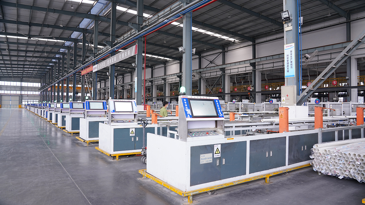 公司占地300畝,總投資9億元,分二期建設(shè)。一期于2015年7月動工建設(shè),投資4億元,建筑面積約80000平方米,分生活、辦公和生產(chǎn)三大功能區(qū)。生產(chǎn)區(qū)包括配件車間、PE/PP-R大口徑車間、PVC擠出車間,主要生產(chǎn)PVC排水管、PVC線管、PVC線槽、PVC雙壁波紋管、PPR給水管、HDPE市政管等,年產(chǎn)量約10萬噸。二期于2021年7月動工建設(shè),投資5億元,建筑面積約58000平方米,設(shè)PVC車間、PE/PP-R市政車間、破碎車間、倉儲物流中心,二期項目建成后可增加產(chǎn)能5萬噸。2021年,公司年生產(chǎn)能力達(dá)到11.33萬噸,實現(xiàn)銷售收入11.18億元,稅收貢獻6009萬元。